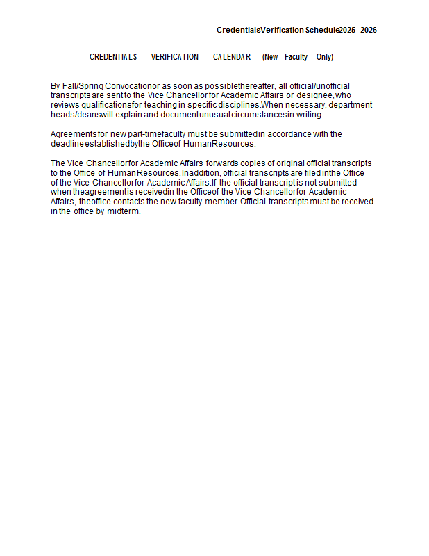 Version 30 Credentials Verification Schedule 2025-2026 (New Faculty)