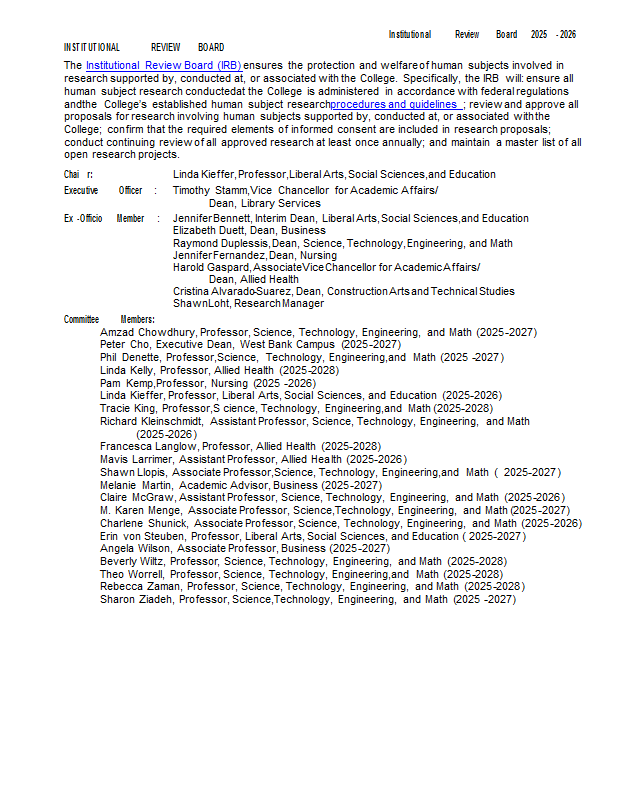 Version 65 Institutional Review Board 2025-2026