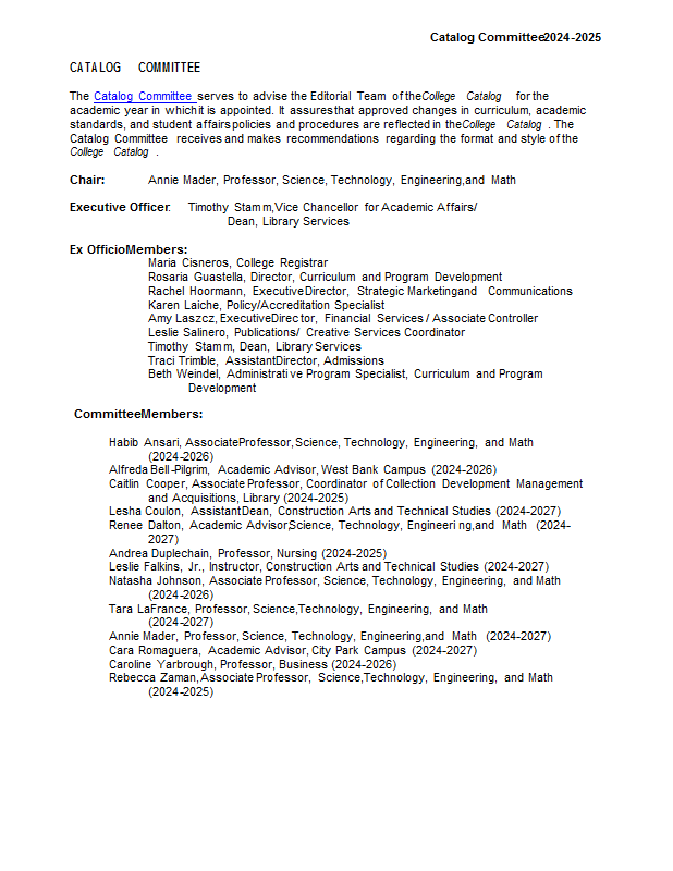 Version 87 Catalog Committee 2024-2025