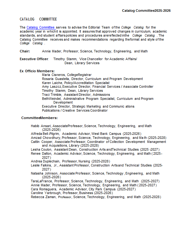 Version 89 Catalog Committee 2025-2026