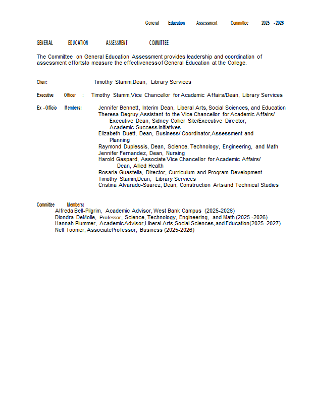 Version 77 General Education Assessment Committee 2025-2026