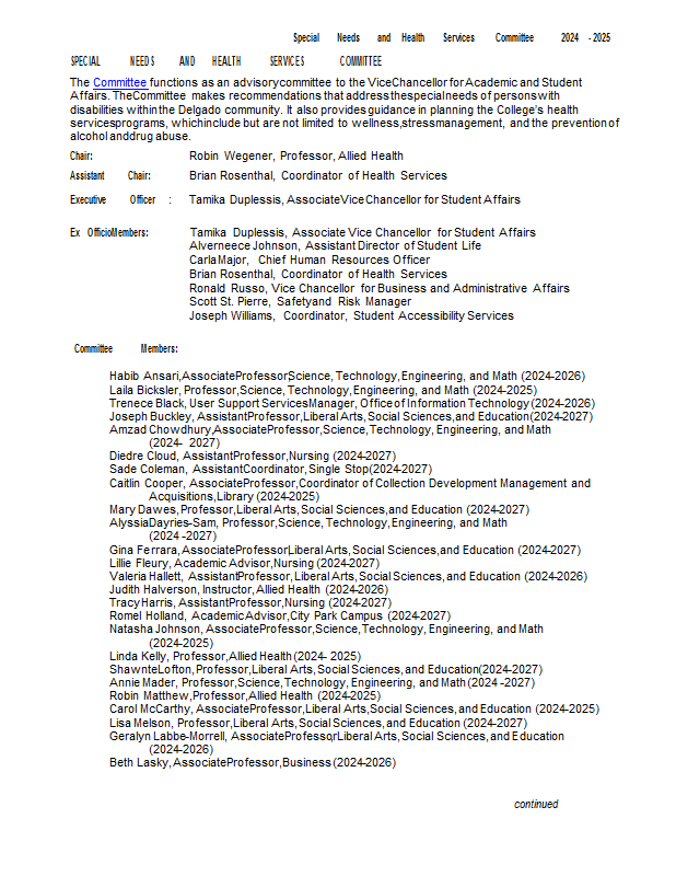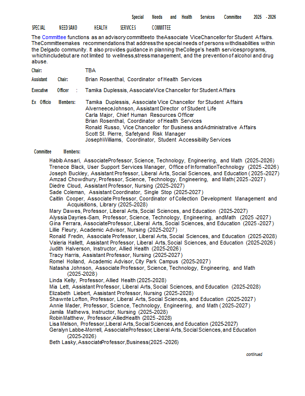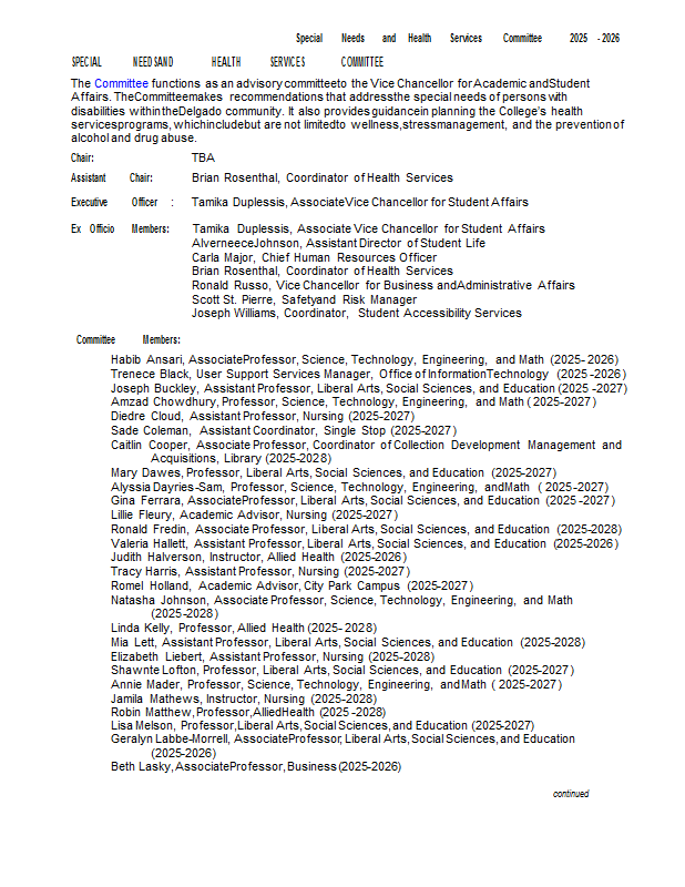 Version 100 Special Needs and Health Services Committee 2025-2026