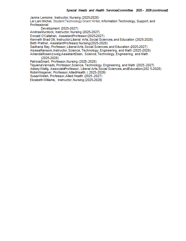 Version 99 Special Needs and Health Services Committee 2025-2026