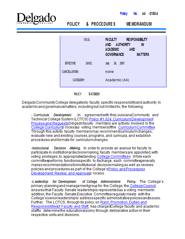 Version 7 AA-2150.4 Faculty Responsibility and Authority in Academic and Governance Matters