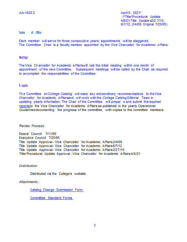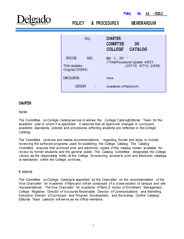 Version 10 AA-1620.2 Charter: Committee on College Catalog