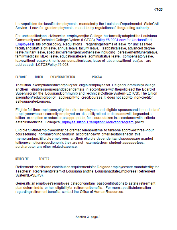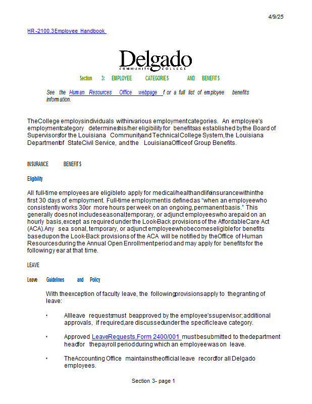 Version 7 HR-2100.3 Employee Handbook: Section 3 - Employee Categories and Benefits