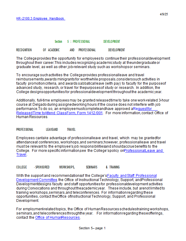 Version 4 HR-2100.3 Employee Handbook: Section 5 - Professional Development