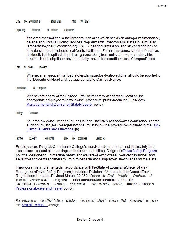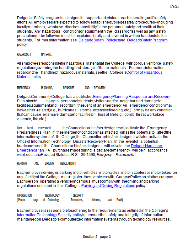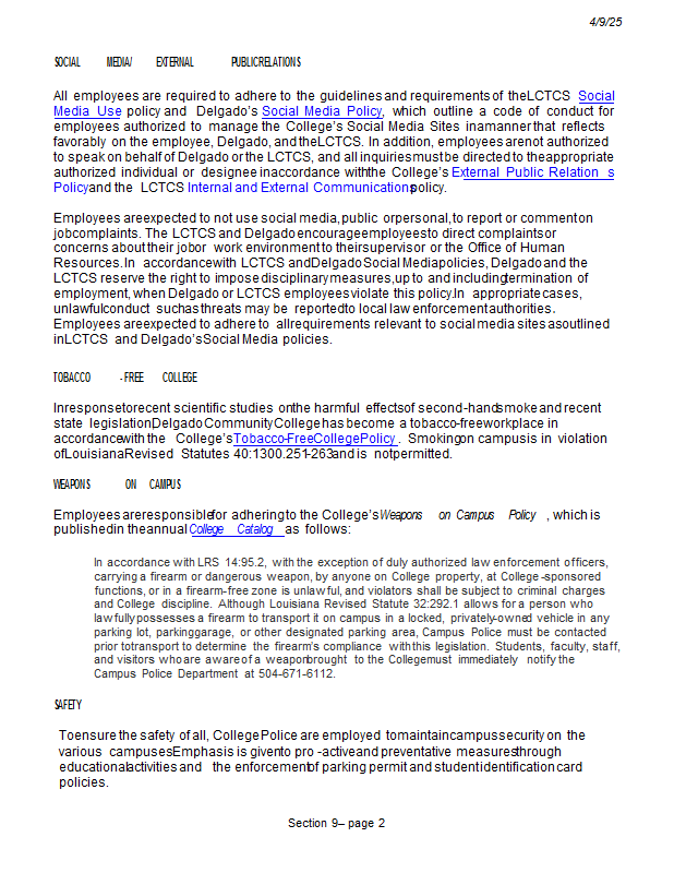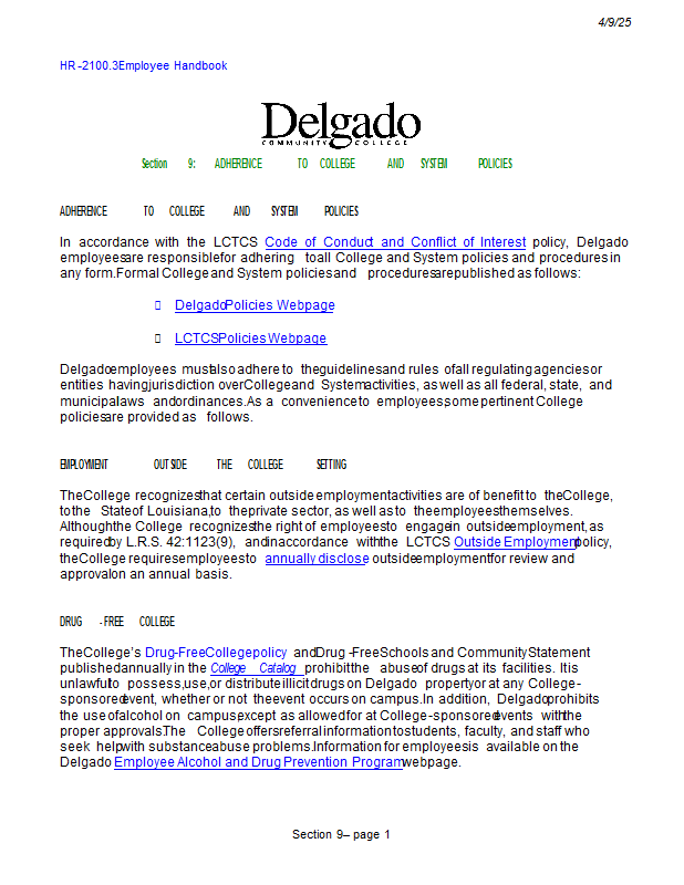 Version 13 HR-2100.3 Employee Handbook: Section 9 - Adherence to College and System Policies