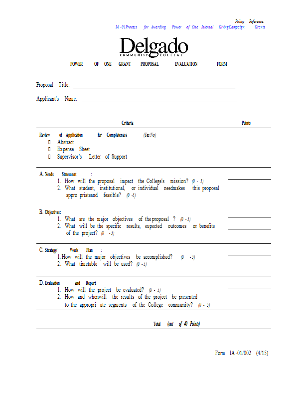 Version 1 IA-01/002 Power of One Grant Proposal Evaluation Form