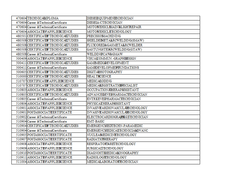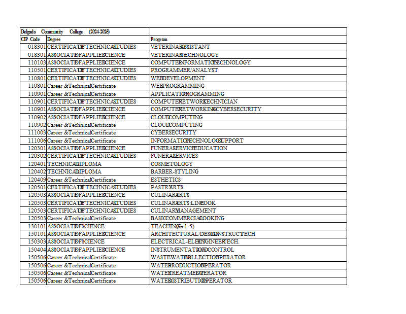 Version 8 Delgado Community College Programs by CIP Sort