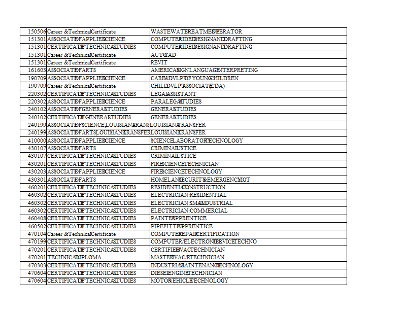 Version 7 Delgado Community College Programs by CIP Sort