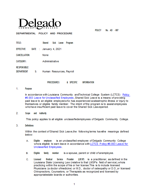 Version 1 AD-007 Shared Sick Leave Program