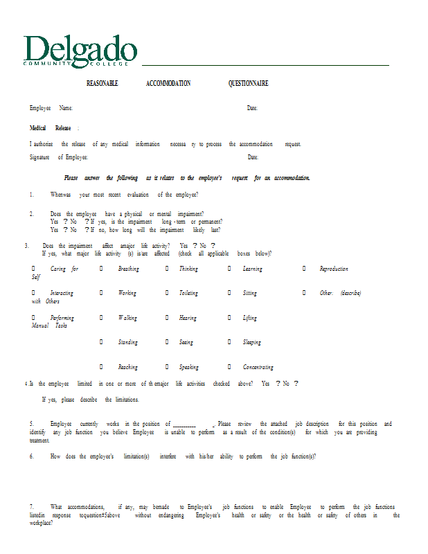 Version 1 Medical Inquiry Form (Reasonable Accommodation Questionnaire).doc