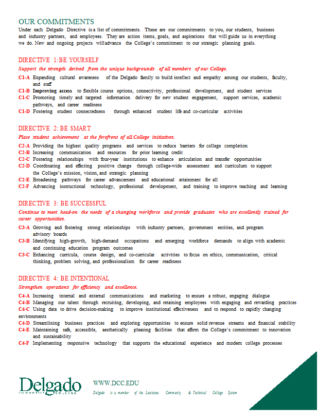 Version 1 Delgado 'Our Future Together' Strategic Goals 23-28, (Commitments and Directives)