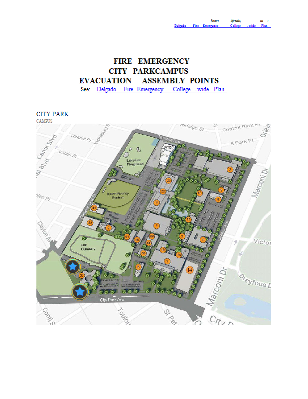 Version 1 Delgado Fire Emergency City Park Campus Evacuation Assembly Points