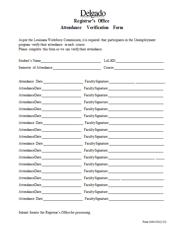 Version 1 Attendance Verification Form (Form 1444-003)