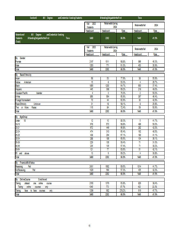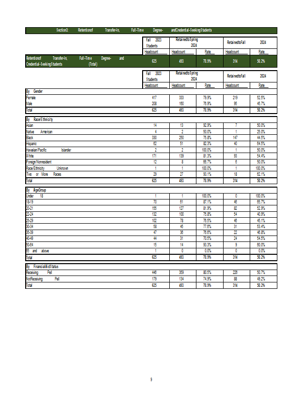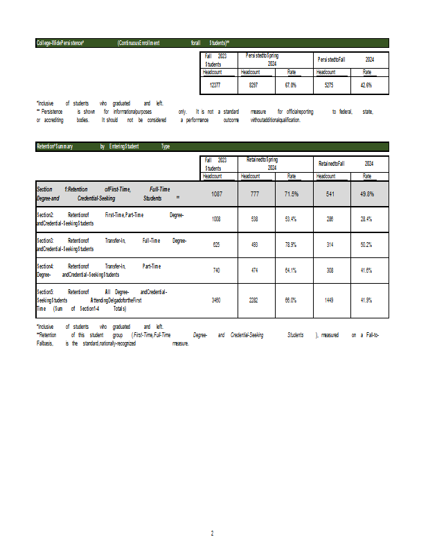Version 1 Fall 2023 to Fall 2024 Retention Report