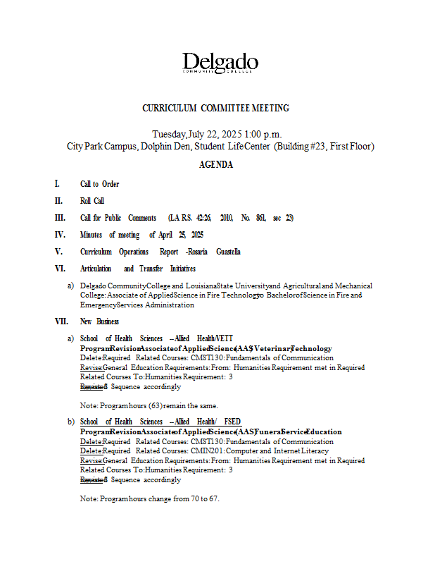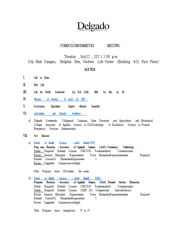 Version 6 Curriculum Committee Meeting Agenda 2025-07-22