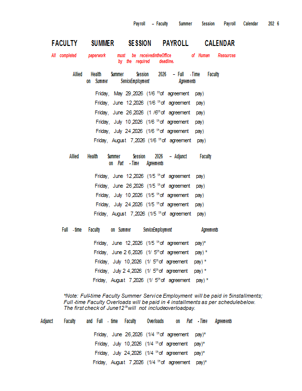 Version 2 Payroll Calendar - Adjunct Teaching Part-time Agreement Payroll Calendar SUMMER 2026