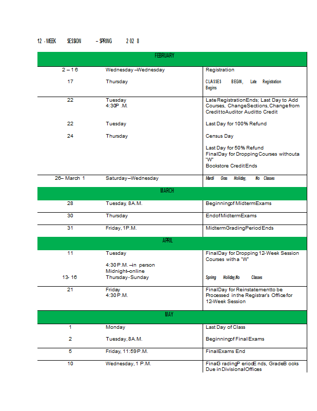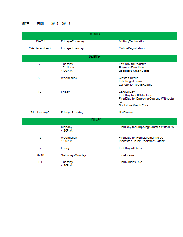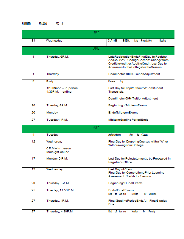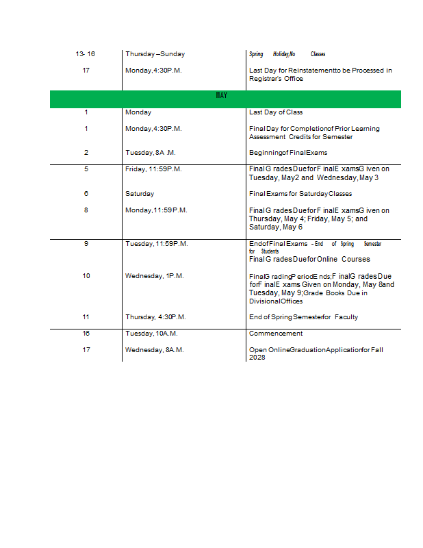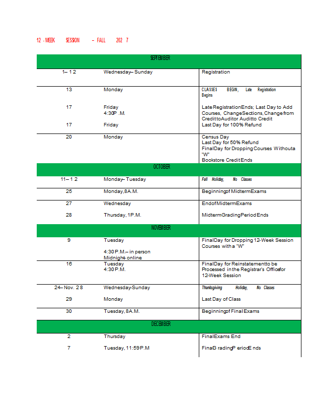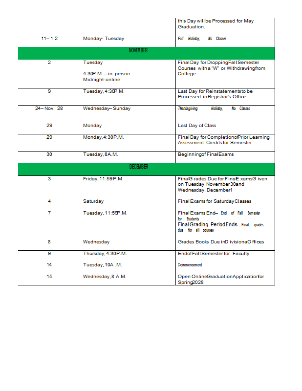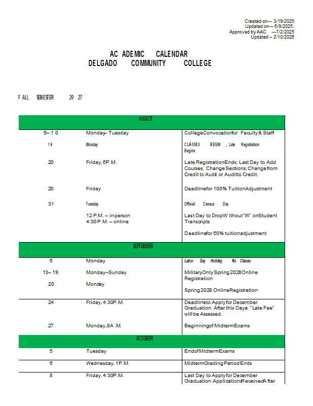 Academic Calendar 2027-2028