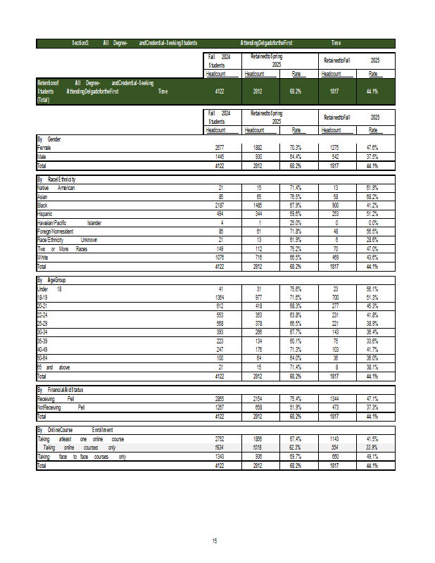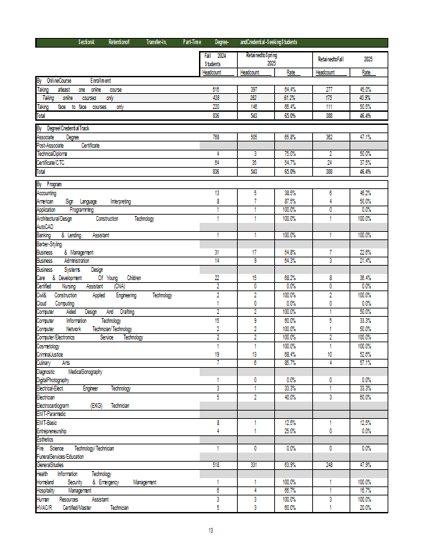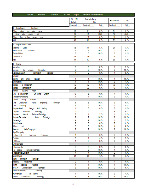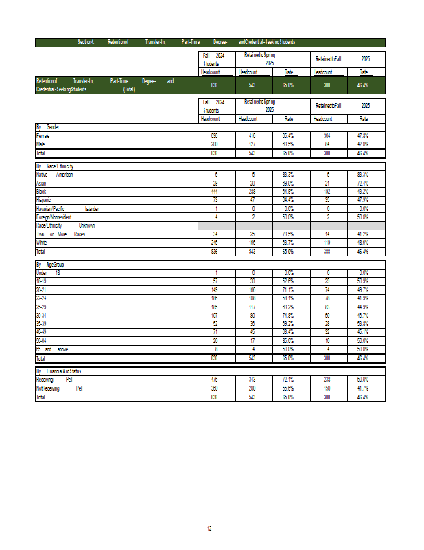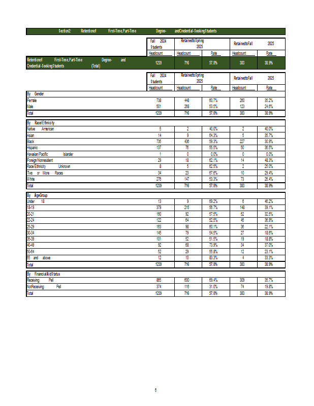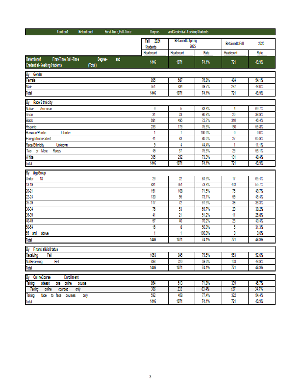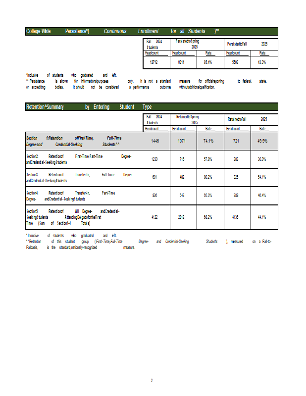Version 1 Fall 2024 to Fall 2025 Retention Report