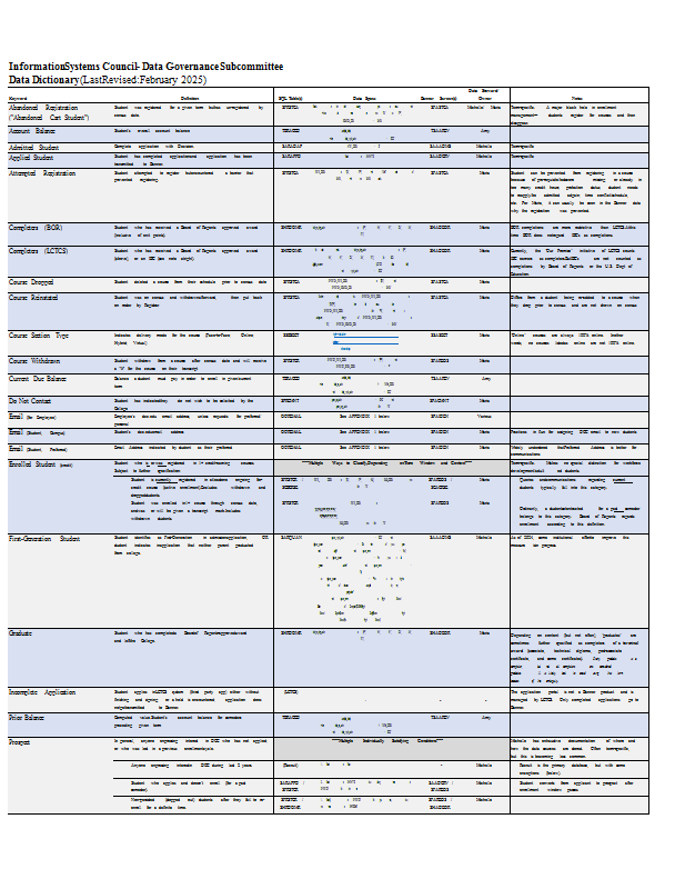 Version 1 Data Dictionary (ISC Governance Subcommittee 2/25) ARCHIVED