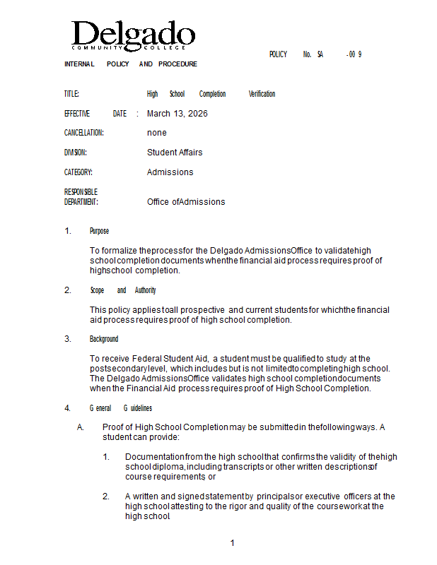 Version 1 SA-009 High School Completion Verification