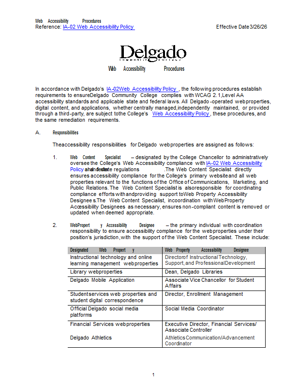 Version 1 IA-02 Web Accessibility PROCEDURES (as per IA-02 Web Accessibility Policy)