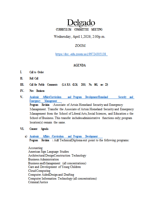 Version 1 Curriculum Committee Meeting Agenda 2026-04-01